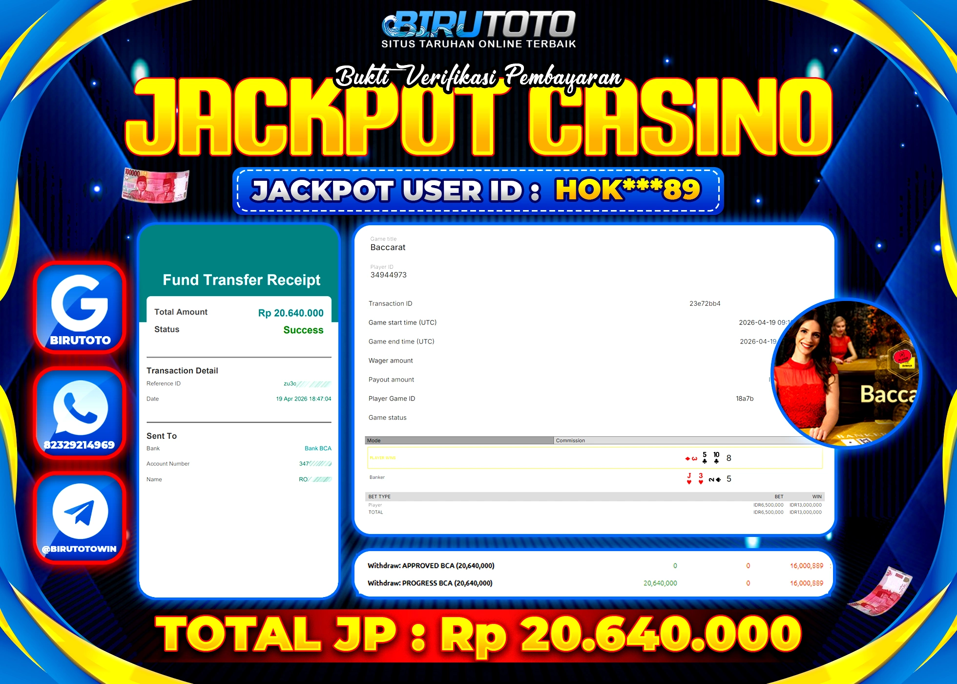 BIRUTOTO JACKPOT LIVE CASINO BACCARAT Rp.21.000.000 LUNAS