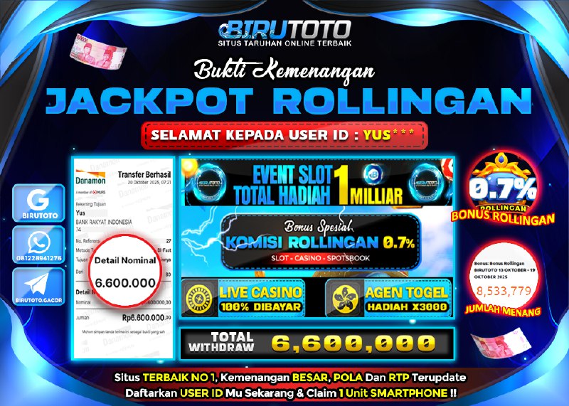 Selamat Kepada Member BIRUTOTO YU**** Telah Jackpot Di BONUS ROLLINGAN
