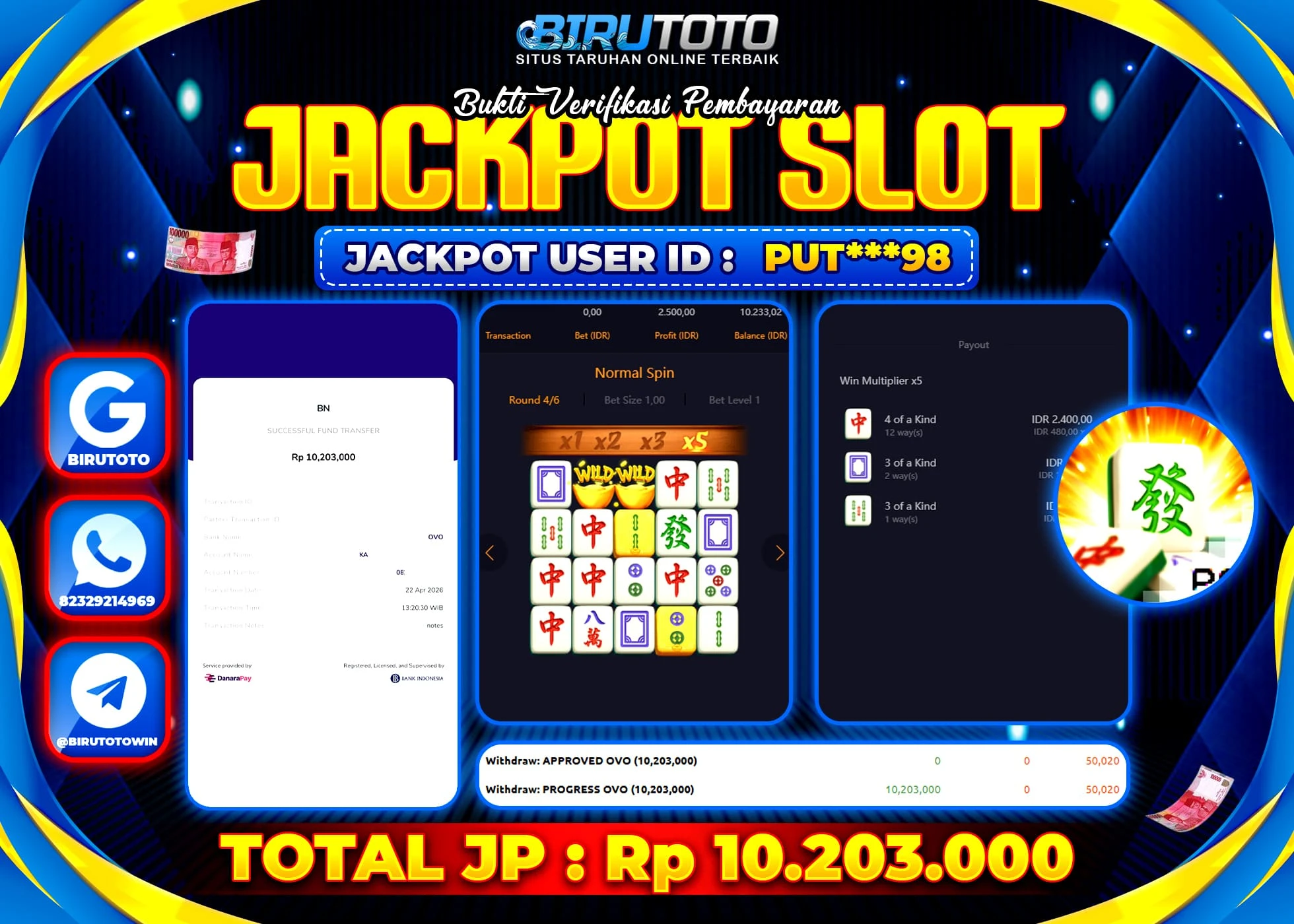 BIRUTOTO JACKPOT SLOT MAHJONG WAYS Rp.10.203.000 LUNAS
