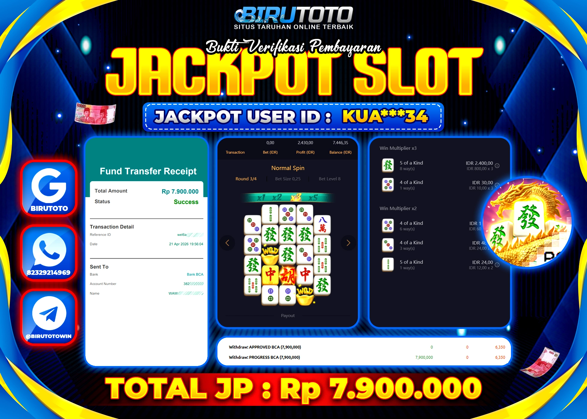 Selamat Kepada Member BIRUTOTO KUA***34 Telah Jackpot Di SLOT MAHJONG WAYS 2