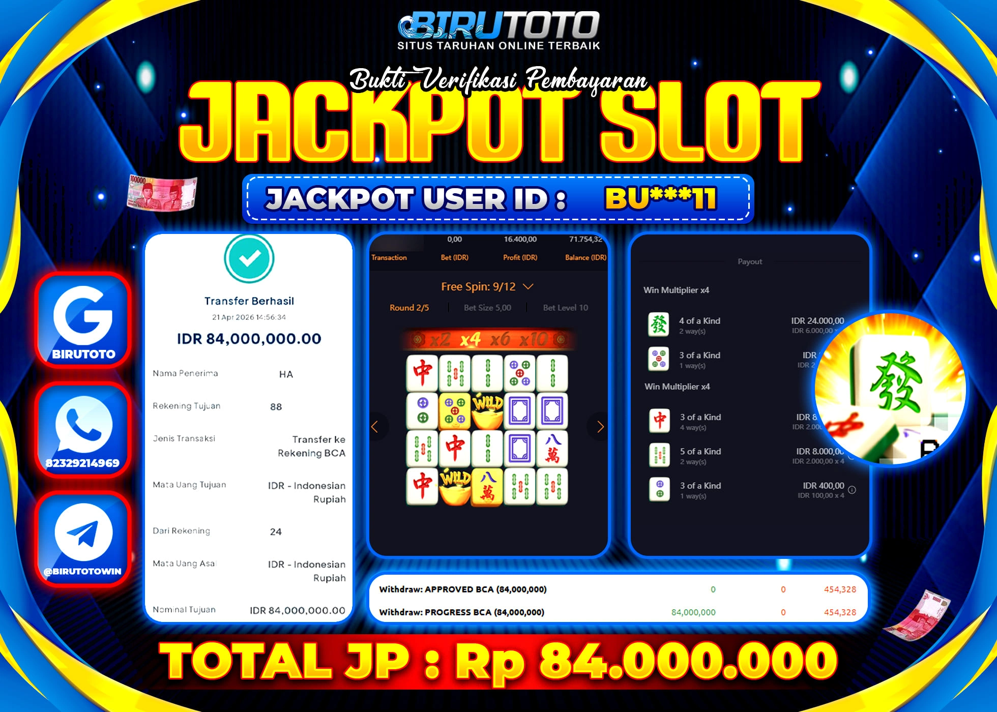 BIRUTOTO JACKPOT SLOT MAHJONG WAYS Rp.84.000.000 LUNAS