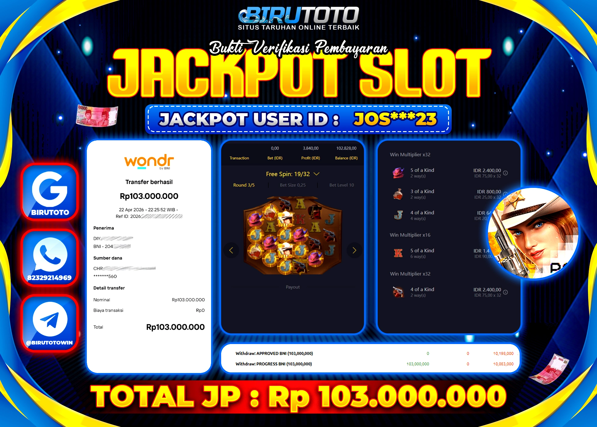 Selamat Kepada Member BIRUTOTO JOS***23 Telah Jackpot Di SLOT WILD BOUNTY SHOWDOWN