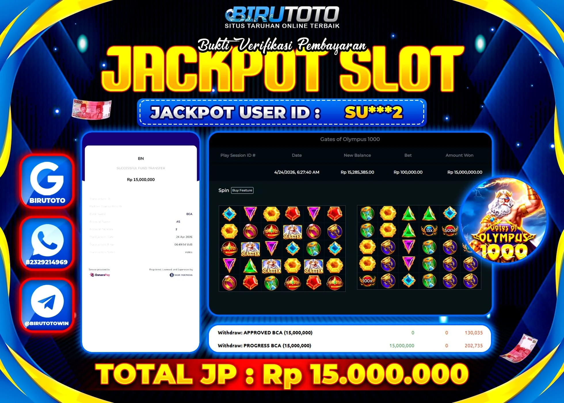 Selamat Kepada Member BIRUTOTO SU***2 Telah Jackpot Di SLOT GATES OF OLYMPUS 1000