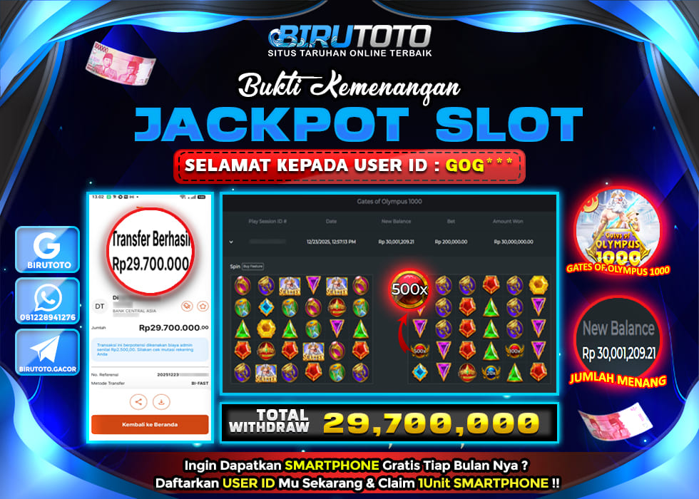 BIRUTOTO JACKPOT SLOT GATES OF OLYMPUS 1000 Rp.29.700.000 LUNAS