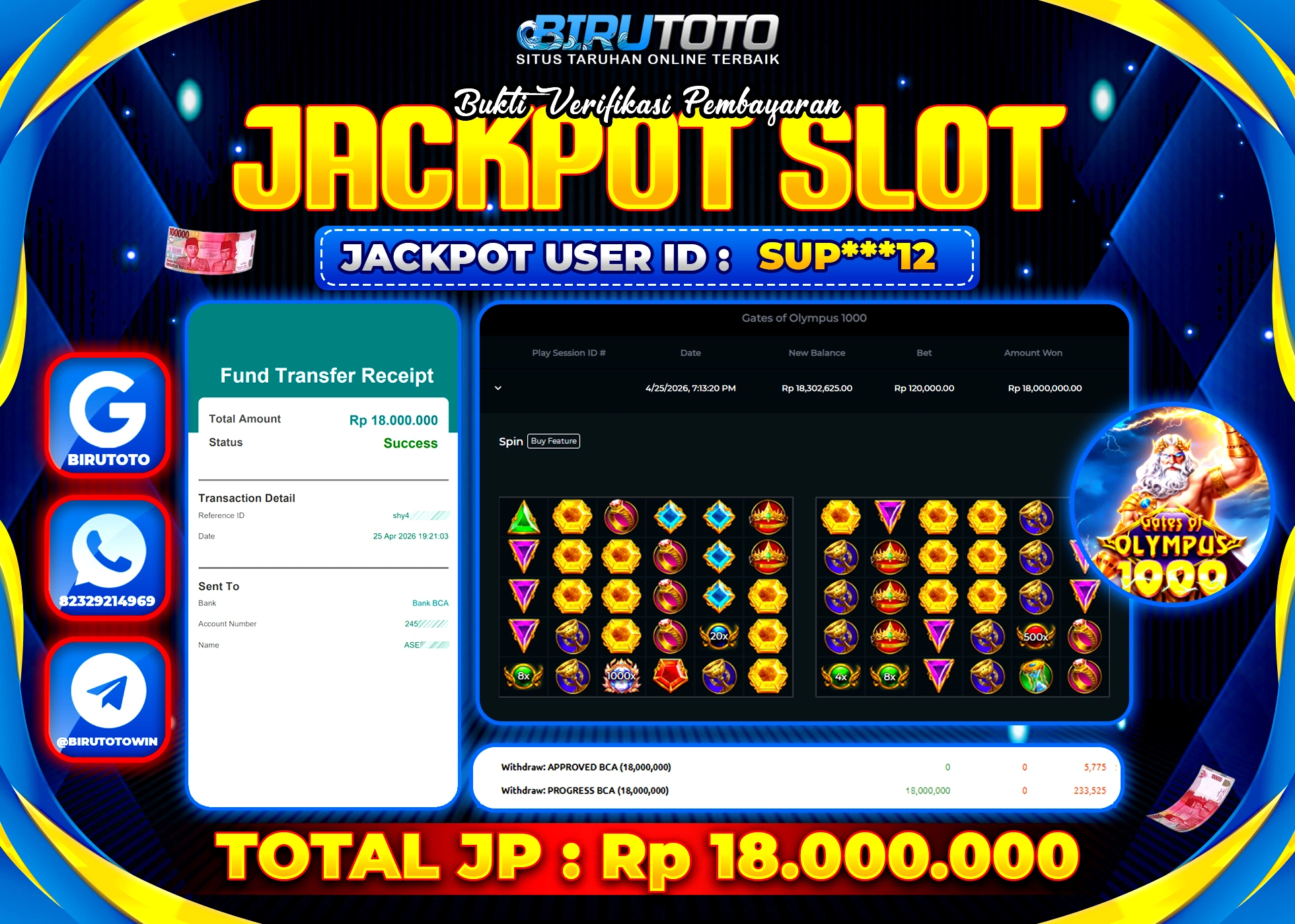 BIRUTOTO JACKPOT SLOT GATES OF OLYMPUS 1000 Rp.18.000.000 LUNAS