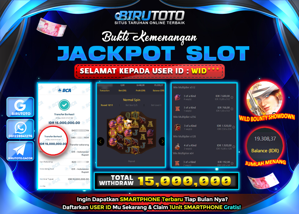 Selamat Kepada Member BIRUTOTO WI**** Telah Jackpot Di SLOT WILD BOUNTY SHOWDOWN
