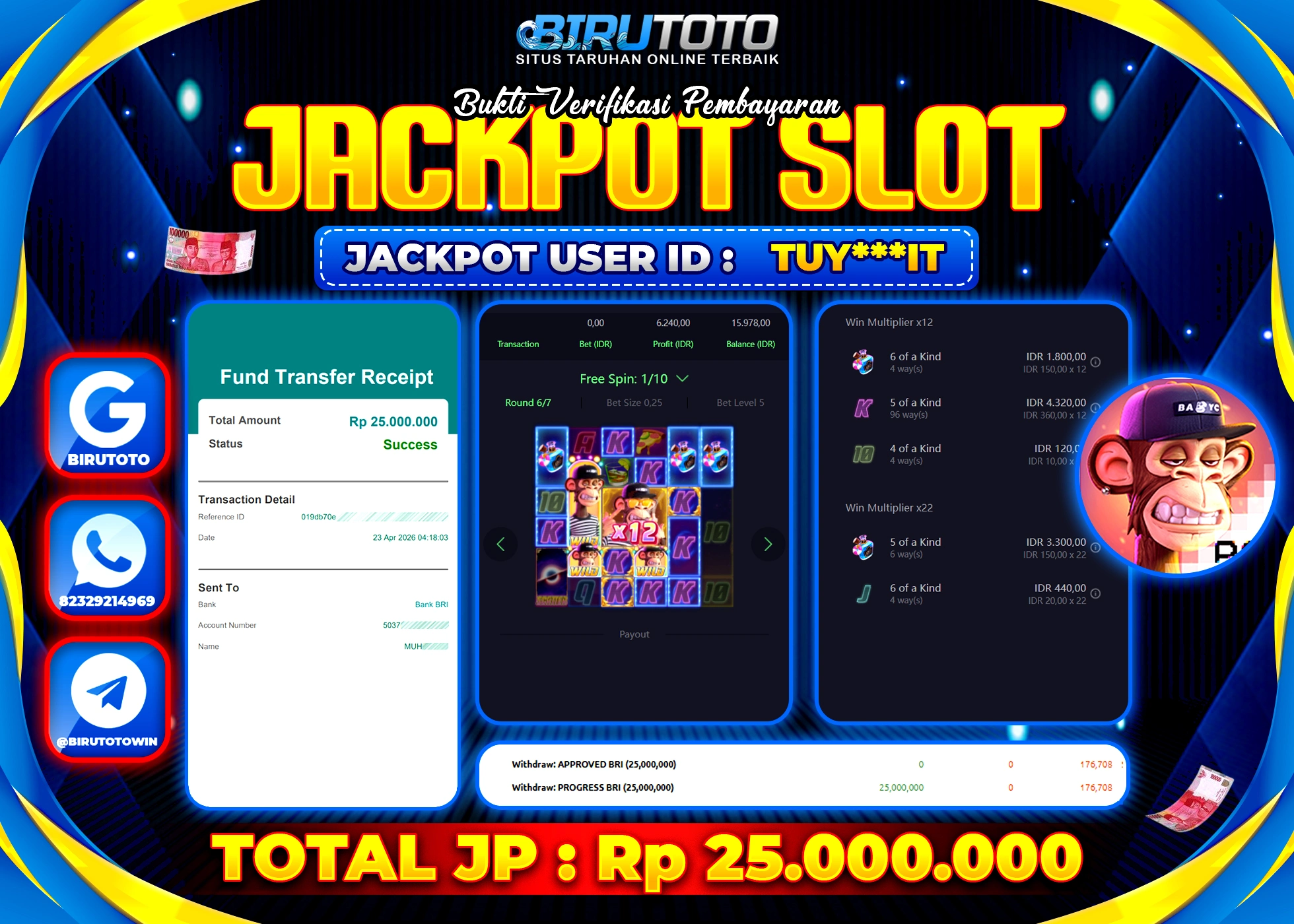 BIRUTOTO JACKPOT SLOT WILD APE #3258 Rp.25.000.000 LUNAS